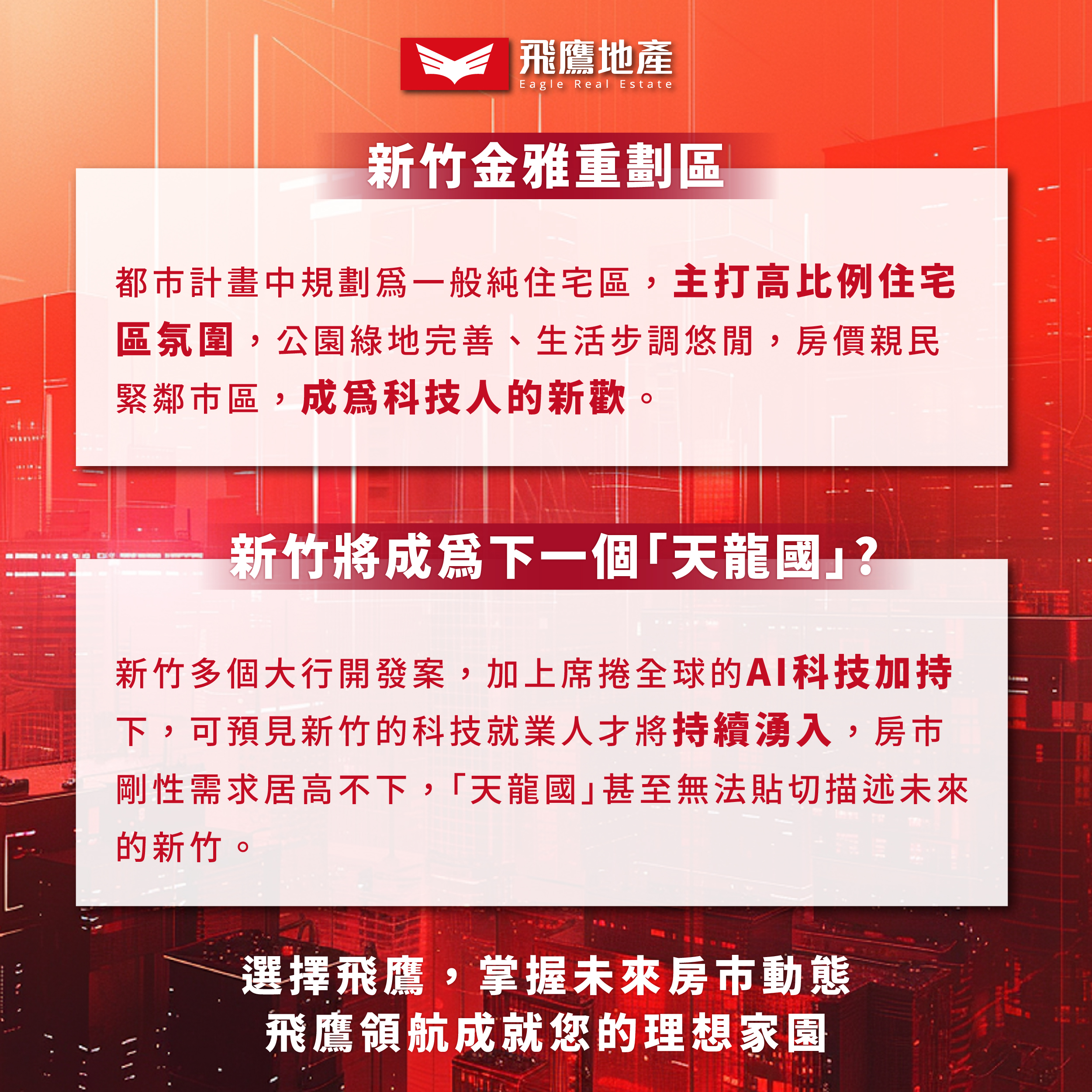 飛鷹地產始終秉持著專業與誠信的精神,我們深知房地產市場的瞬息萬變,為每一位客戶提供最完整、透明的房市資訊及最有價值的市場洞察,跟著飛鷹一起探索這個有「科技護國神山群」守護的👉新竹。