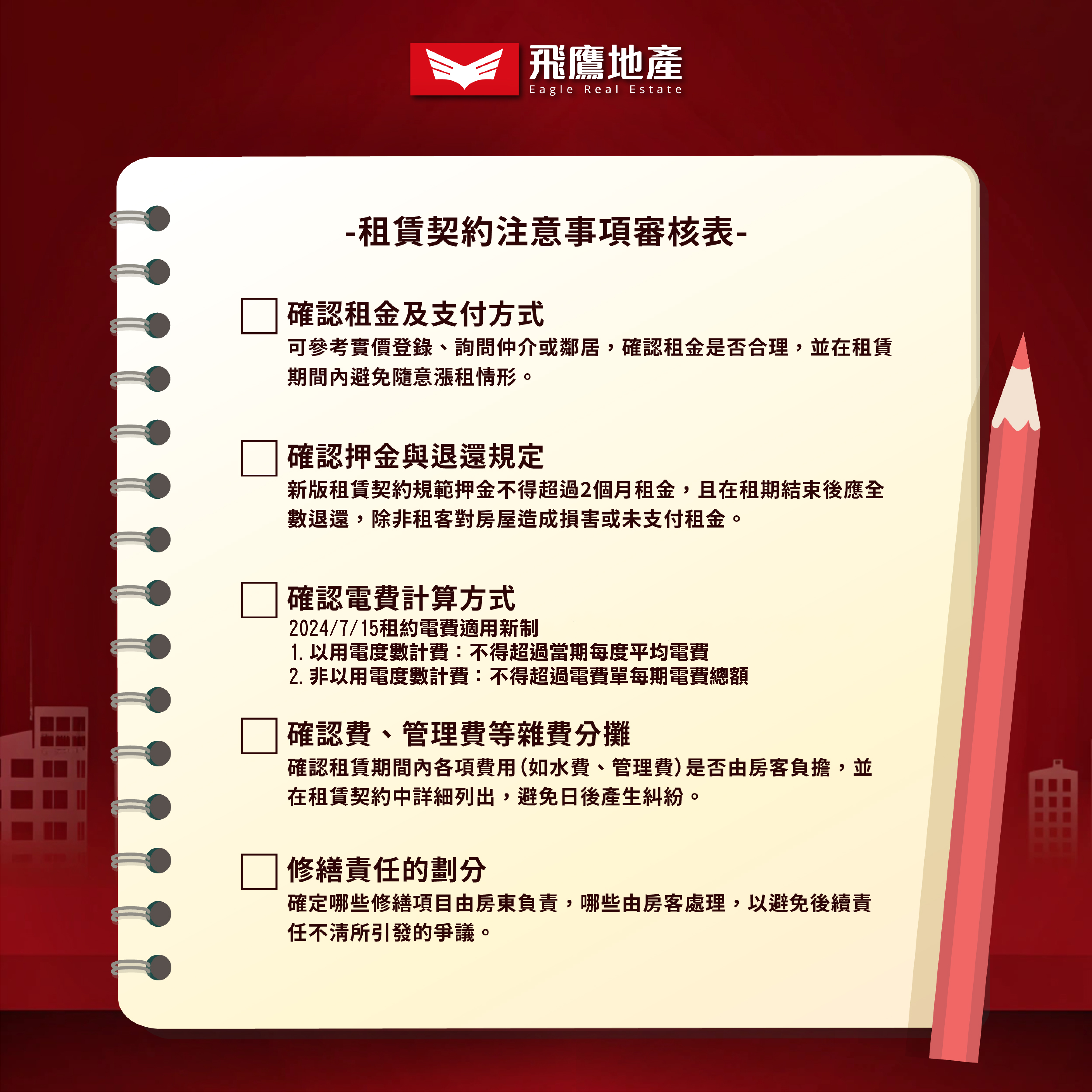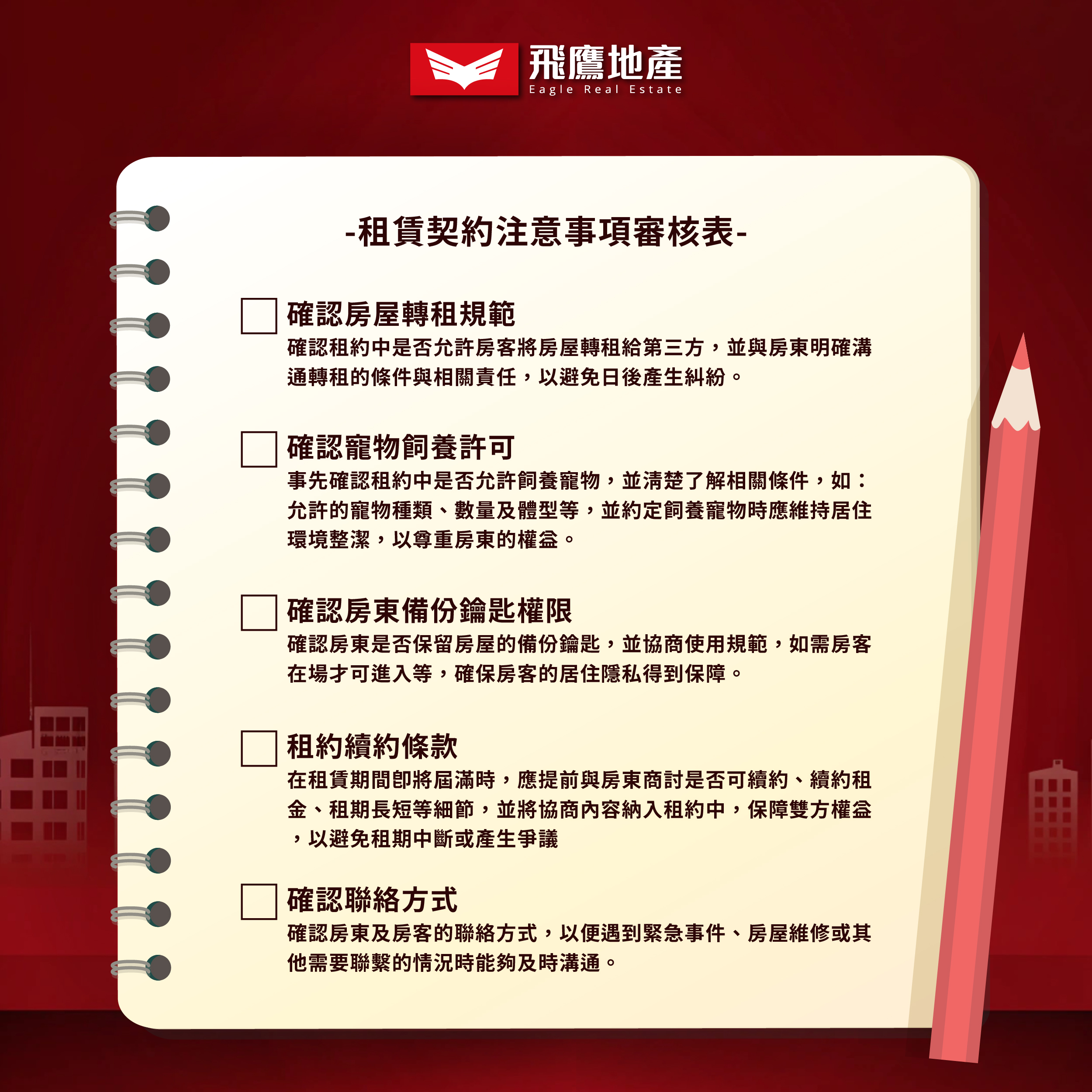 今天,飛鷹地產特別為您整理了租賃契約的重點資訊,讓您在租屋簽約時更加安心💕