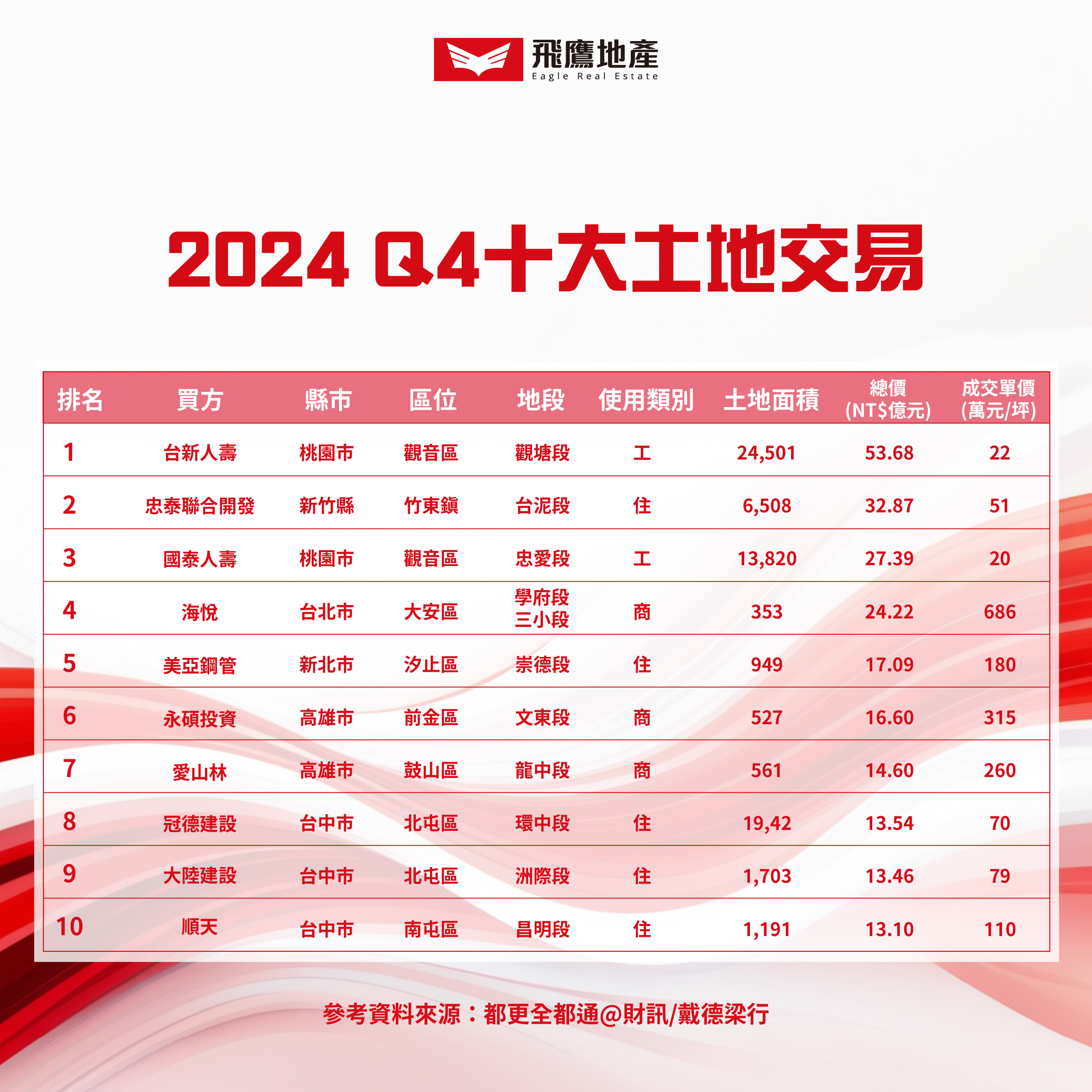 📜根據戴德梁行最新發布的房地產趨勢報告,2024年商用不動產與土地市場雙雙表現亮眼,土地交易量突破2632億元,相較於2023年激增1.3倍,創下歷史第四高紀錄。
