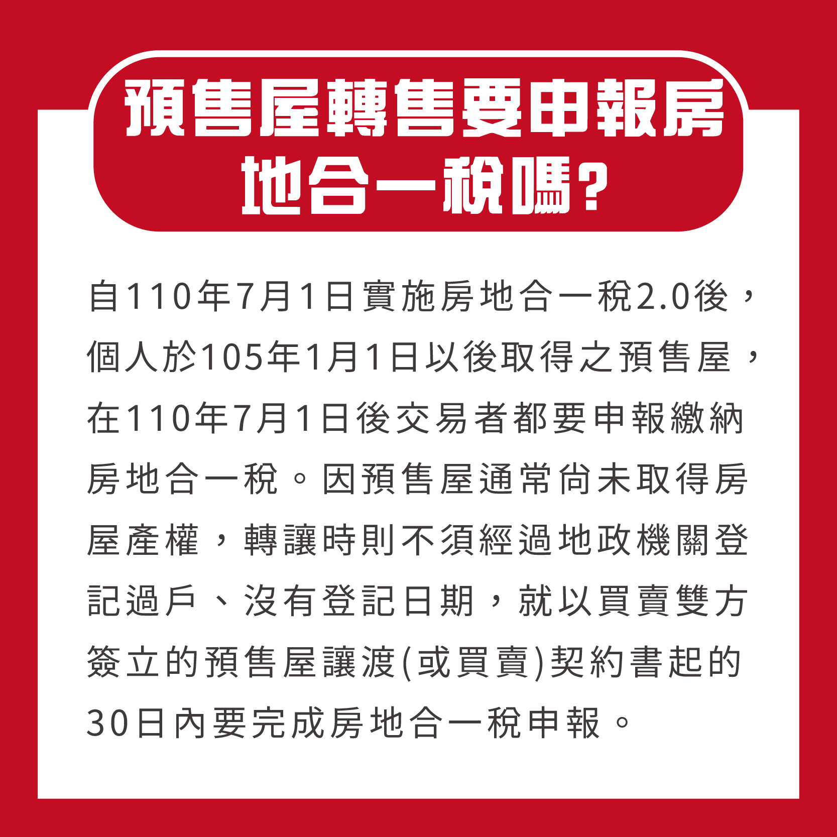最近想賣房嗎?賣房子前您必須先了解的《房地合一稅》房地合一稅是什麼❓課徵範圍❓有優惠利率嗎❓您的疑問透過飛鷹地產整理的《房地合一稅 懶人包》來為您解答😎希望透過這些資訊,幫助您看緊荷包😉資料來源:租寓