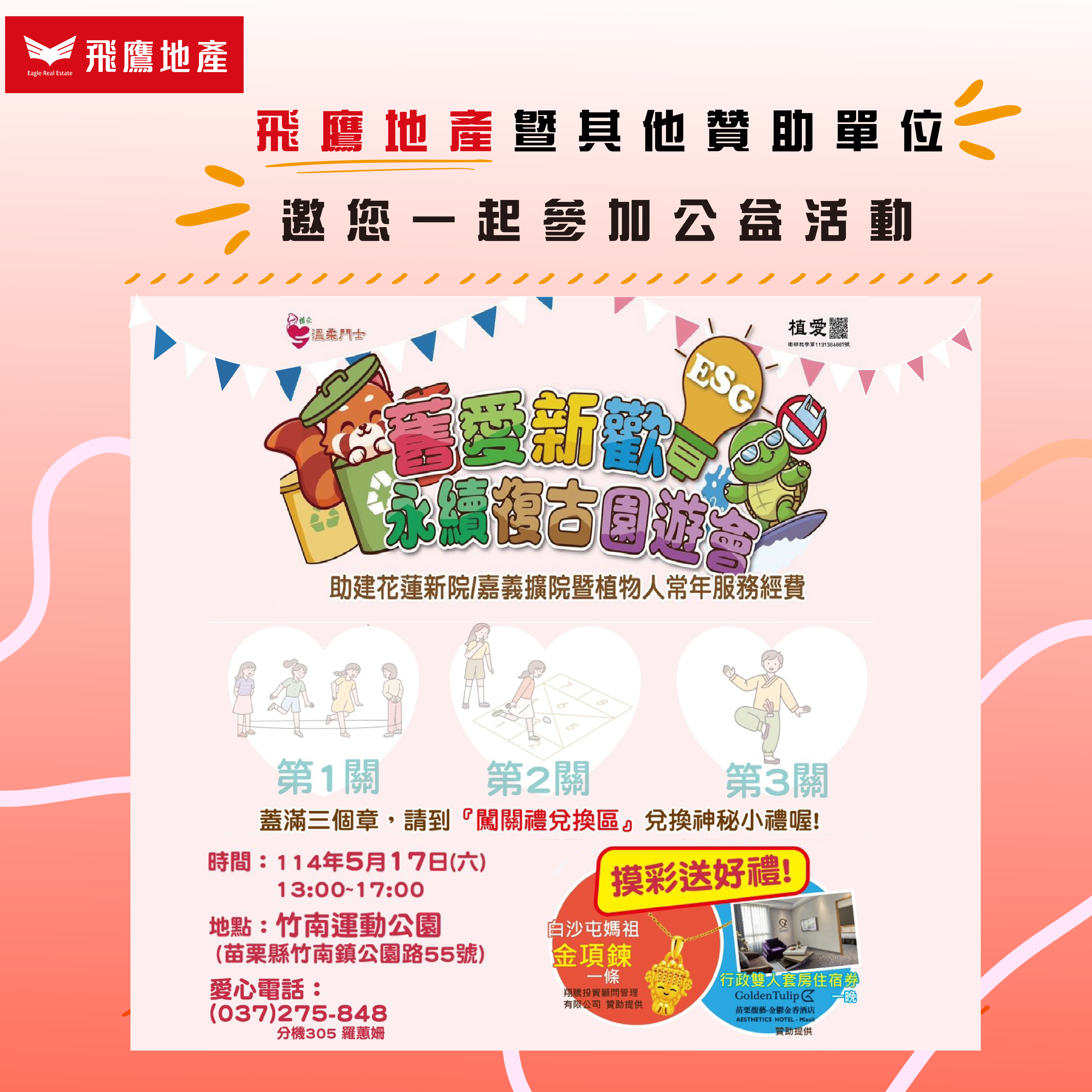 飛鷹地產作為最有特色及最有溫度的房仲品牌,很榮幸可以贊助此次的公益園遊會,一起幫助需要的家庭。