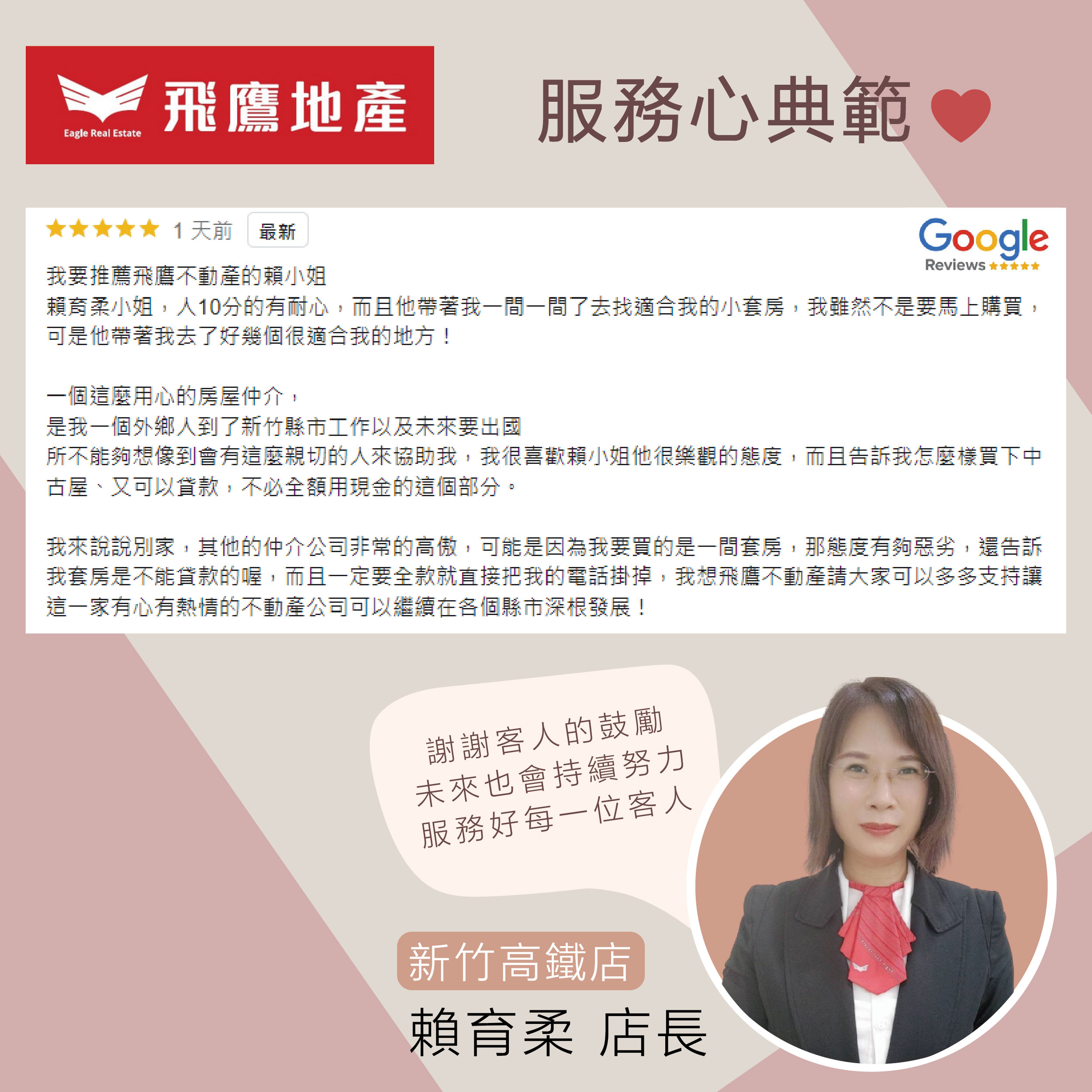 謝謝Phoebe客人在Google評論上的溫柔回饋分享,飛鷹的存在,就是讓每一次尋家旅程,都充滿愛與幸福
